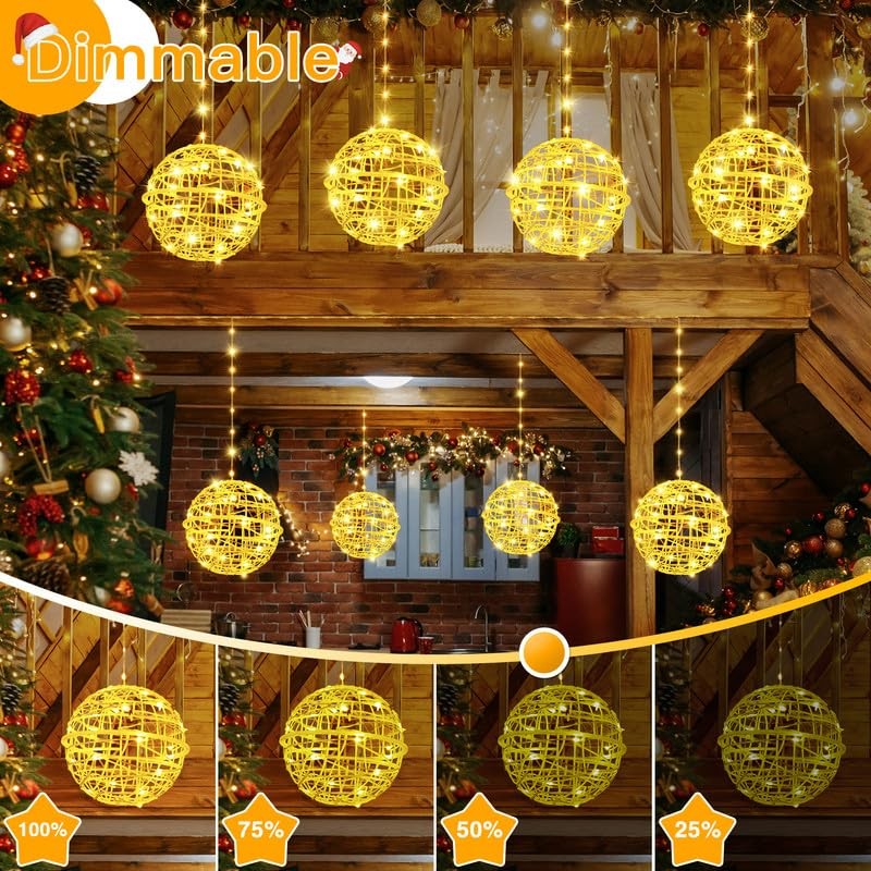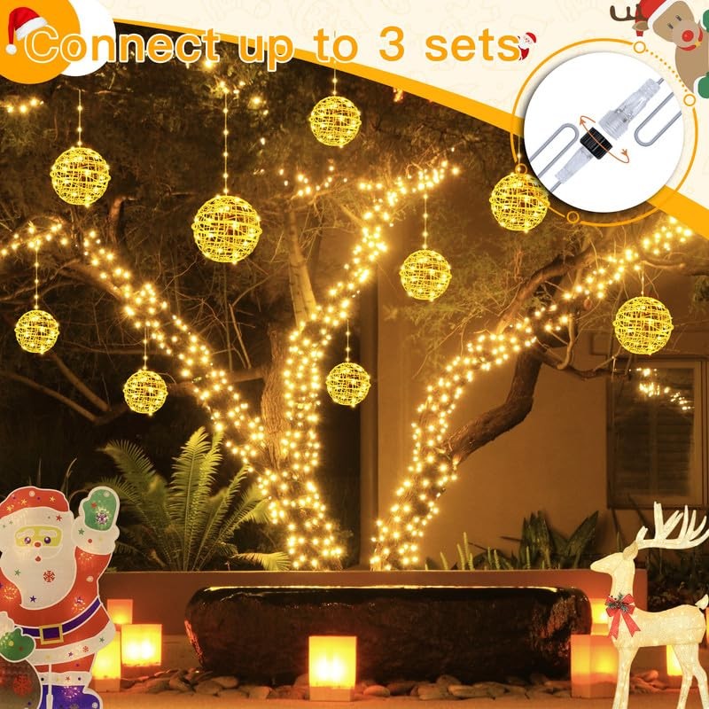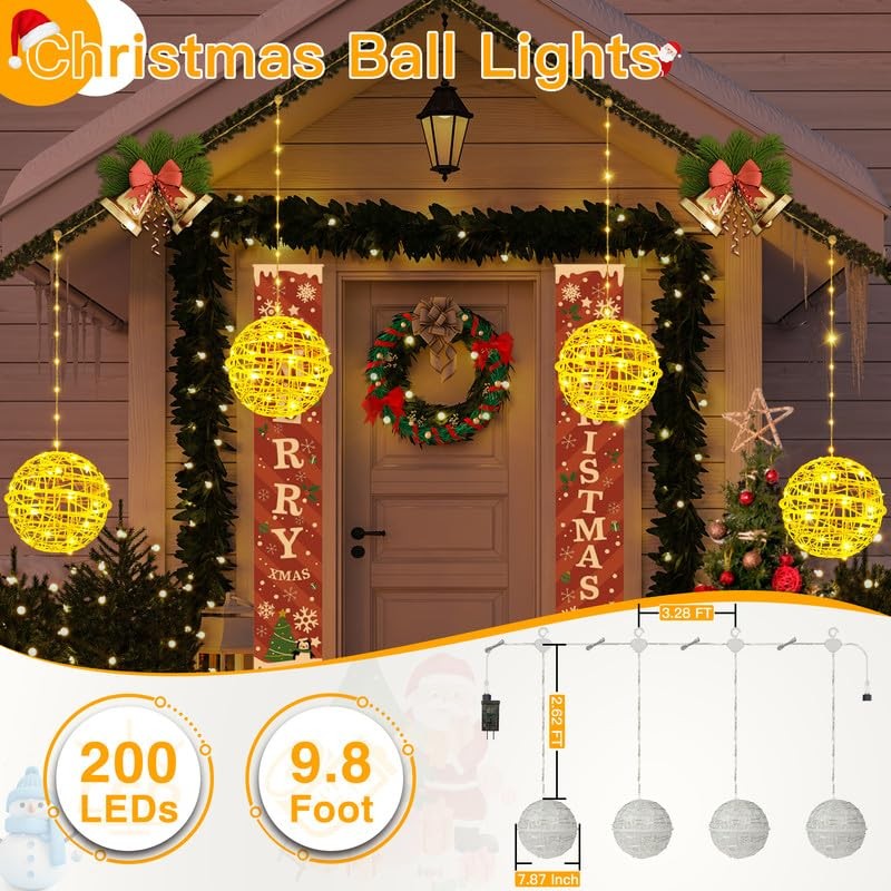 • End-to-end Expandable: Christmas lights with 4Pack 7.87inch ball lights, 9.8ft long+16.4ft extension copper cord. Connect up to 3 sets via a simple installation. Long enough to illuminate your yard. Note: Connected lights can be controlled by one remote