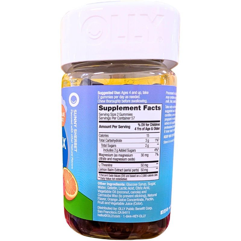 - Product: OLLY Kids Chillax Gummy Sunny Sherbert 114 Count