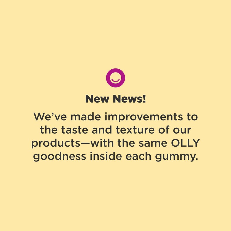 - NEW NEWS: We've made improvements to the taste and texture of our productswith the same OLLY goodness inside each gummy
