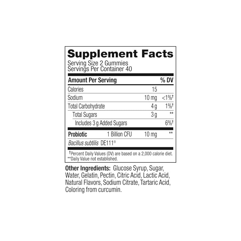 - OLLY PROBIOTIC GUMMY SUPPLEMENT: Go with your gut, and give it a boost with one billion live cultures of bacillus coagulans, probiotics that work with your body's natural bacteria to help keep your gut flora thriving and your tummy healthy