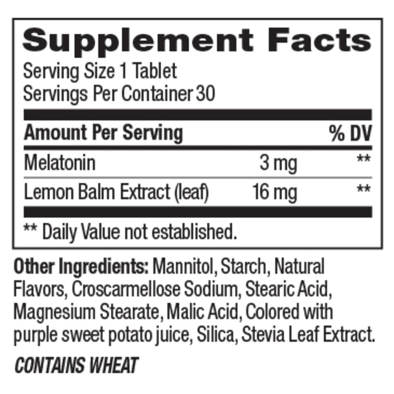 - THE GOODS INSIDE: 3 mg Melatonin helps you fall asleep and stay asleep, plus Lemon Balm is a botanical that's been used for centuries.*