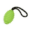 - FEATURES: The rubber surface is designed to help clean your dog's teeth and massage their gums for pain-free dental care. The Spikey Rugby is complete with a rope end for throwing and tugging!