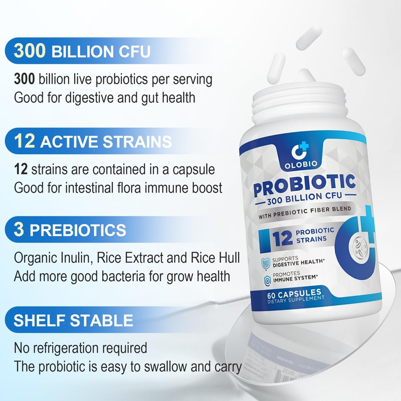 OLOBIO OLOBIO 300 Billion CFU Probiotic, 12 Strains with 3 Organic Prebiotics, Probiotics for Women and Men, Daily Supplement for Digestive, Immune, Gut & Bloating Health, Shelf Stable, Vegan, 120 Counts