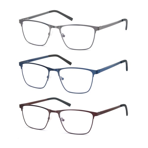 OLOMEE Blue Light Blocking Reading Glasses Mens Full Metal Square Readers +2.75 Lightweight Cheaters Reading Glasses 3 Pack