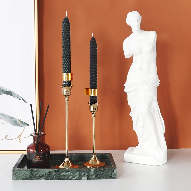 - 14Pack Unique Tapers — 7 pairs of honeycomb taper candles in 7 colors. Our taper candles are 8 inch in tall and 7/8 inch in diameter, fits in standard candle holders. Buring time is about 4 ~5hours, perfect for any celebrations, parties, and festivals. NOTE: As these candles are hand rolled, there may be slight differences in diameter, please do not worry, just press firmly on the end of the taper to make them in the same diameter or let them fit the candle holders.