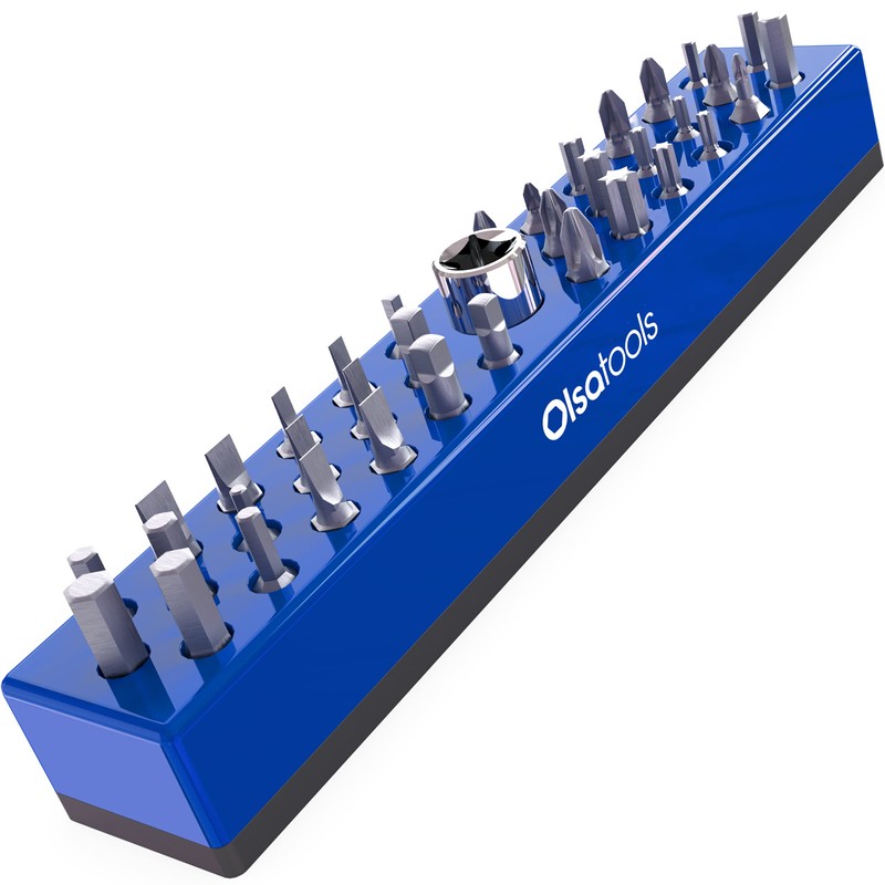 Olsa Tools Hex Bit Organizer with Strong Magnetic Base - Blue Holder for Drill, Tamper, or Specialty Bits - Compact Magnetic Storage Solution - Part 1002