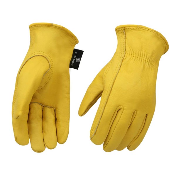 - Durable: This work leather glove is made of high-quality cowhide, which can provide you with the highest abrasion resistance and puncture resistance. This yellow is particularly eye-catching. It is easy to find in many tools. When you see it, you will fall in love with this bright yellow glove.