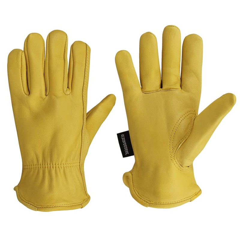 OLSON DEEPAK Leather Gardening Gloves for Men and Women, Soft and Flexible Work Gloves (Medium, 1 Pair)