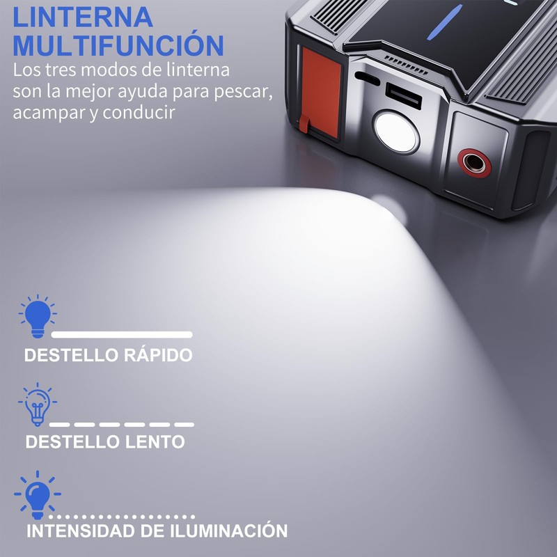 - 【Multifunktionale LED-Taschenlampe mit 3 Modi】Die integrierte LED-Leuchte verfügt über drei Beleuchtungsmodi: Dauerlicht, Blitzlicht und SOS. Ob bei Nacht, Panne oder Notfall–mit dieser starthilfe powerbank sind Sie immer gut gerüstet.