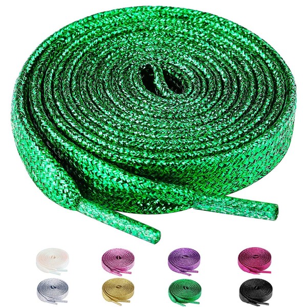 Olukssck [2 Pairs] Flat Glitter Shiny Metallic Shoe Laces for Sneakers, 2/5" Wide Sequin Athletic Shoelaces Dark Green 47 inch(120cm)