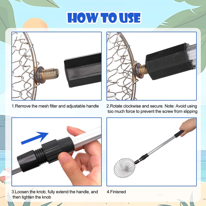 - Effortless Shell Gathering: With the long, adjustable sand sifters, picking up shells and shark teeth is a breeze – no more bending required. Paired with a rock scooper and a beach shell collecting bag, it's a fun family activity.