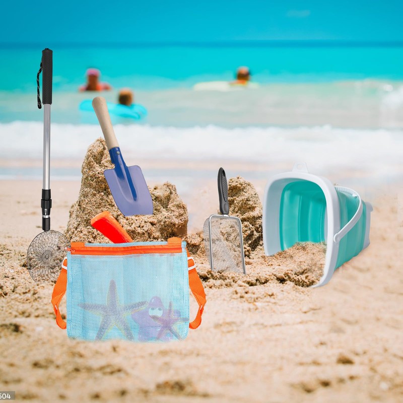 - Adequate Quantities: Receive 2 long-handled beach sand sifters, 2 sand scoops, and 2 shelling bags, along with 2 foldable beach buckets and 2 beach shovels – a total of 10 pieces. Perfect for family or friends' beach adventures.