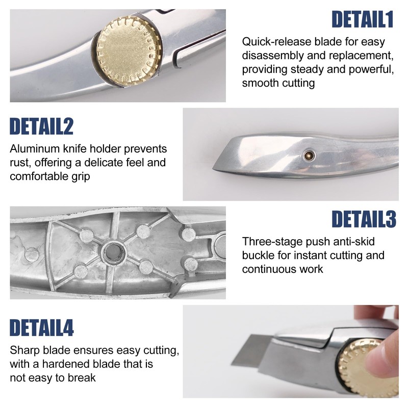 • COMFORTABLE TO HOLD - The roofing utility knife sports a sleek, streamlined design that ensures a comfortable grip; Strategically fashioned to reduce hand strain during prolonged use, it incorporates aesthetics to provide you with a knife that is not just easy to use but also pleasing to the eyes.