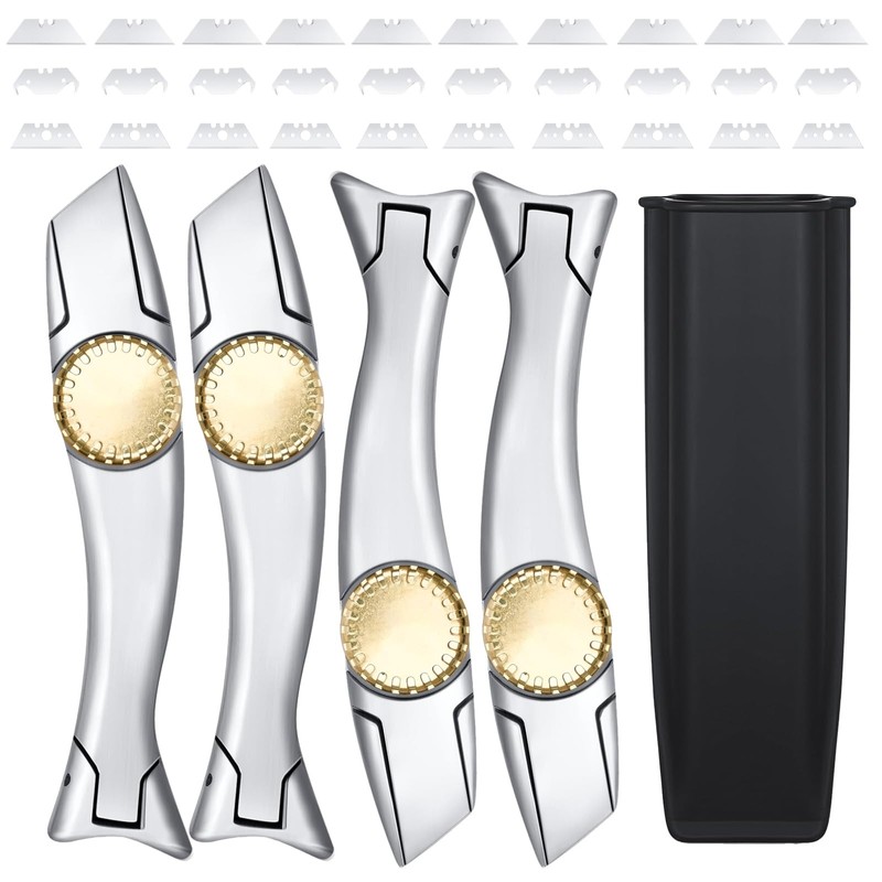 Olutacot 4 Pcs Heavy Duty Shark Knife Carpet Knife with 30 Pcs Replacement Kn...