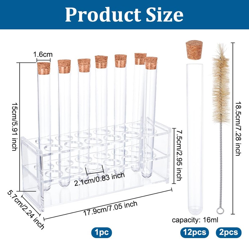 - Package Included--You will receive 1pc 12 holes tube rack, 2pcs tube brushes, 12pcs tubes with cork stoppers, 15pcs in total. It is enough for your daily use