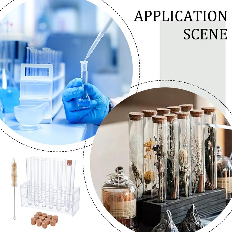 - Material Information--The tube rack is made of acrylic material, have good strength, durable and long service life, good light transmittance and high temperature resistance. And the tube is made of plastic with cork stopper