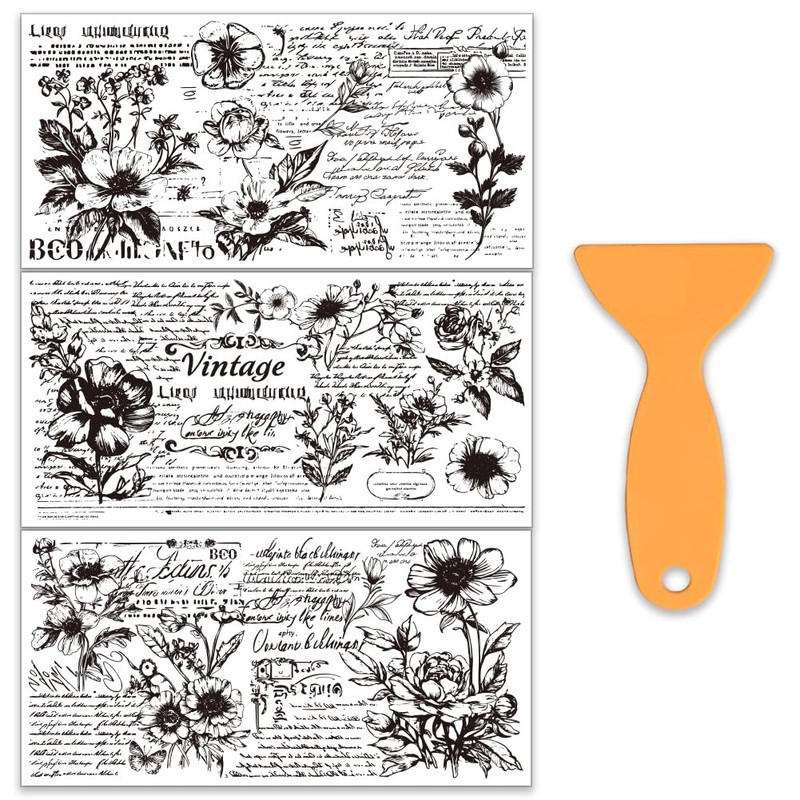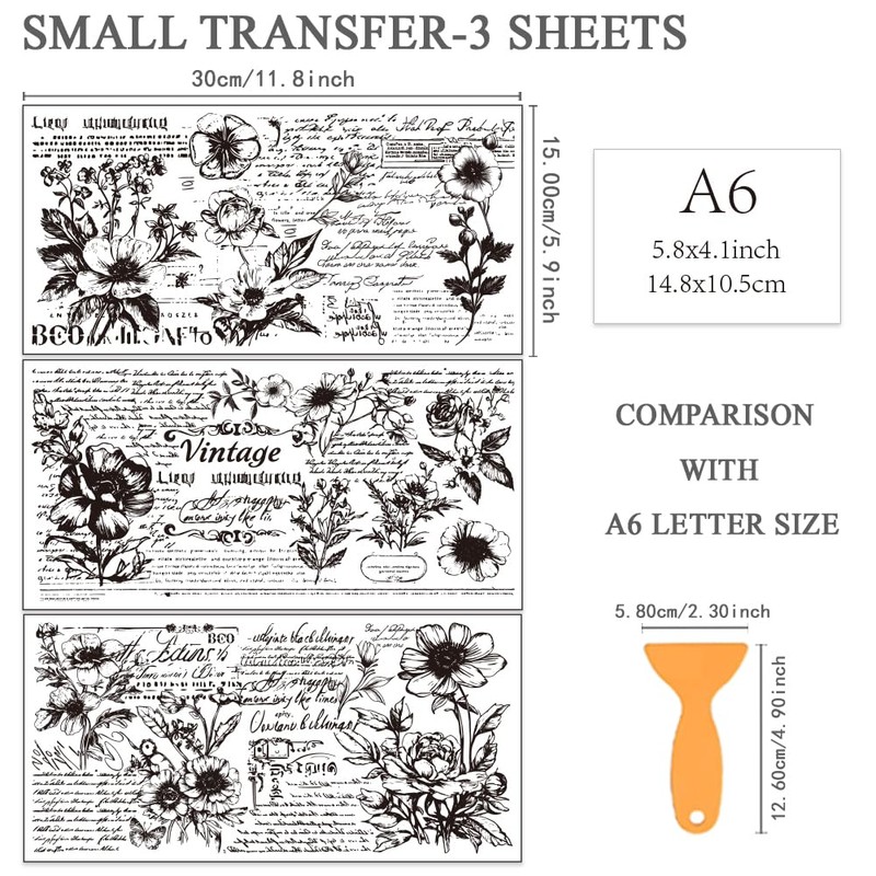 OLYCRAFT 3 Pieces/Set Black White Decals for Rubbing on Furniture and Crafts 30 x 15 cm Flower Text Furniture Sticker Transfer Sticker for Rubbing with 1 Piece Scraper for Scrapbook