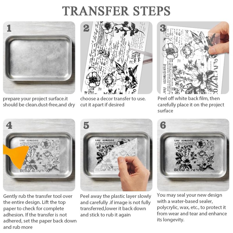 OLYCRAFT 3 Pieces/Set Black White Decals for Rubbing on Furniture and Crafts 30 x 15 cm Flower Text Furniture Sticker Transfer Sticker for Rubbing with 1 Piece Scraper for Scrapbook