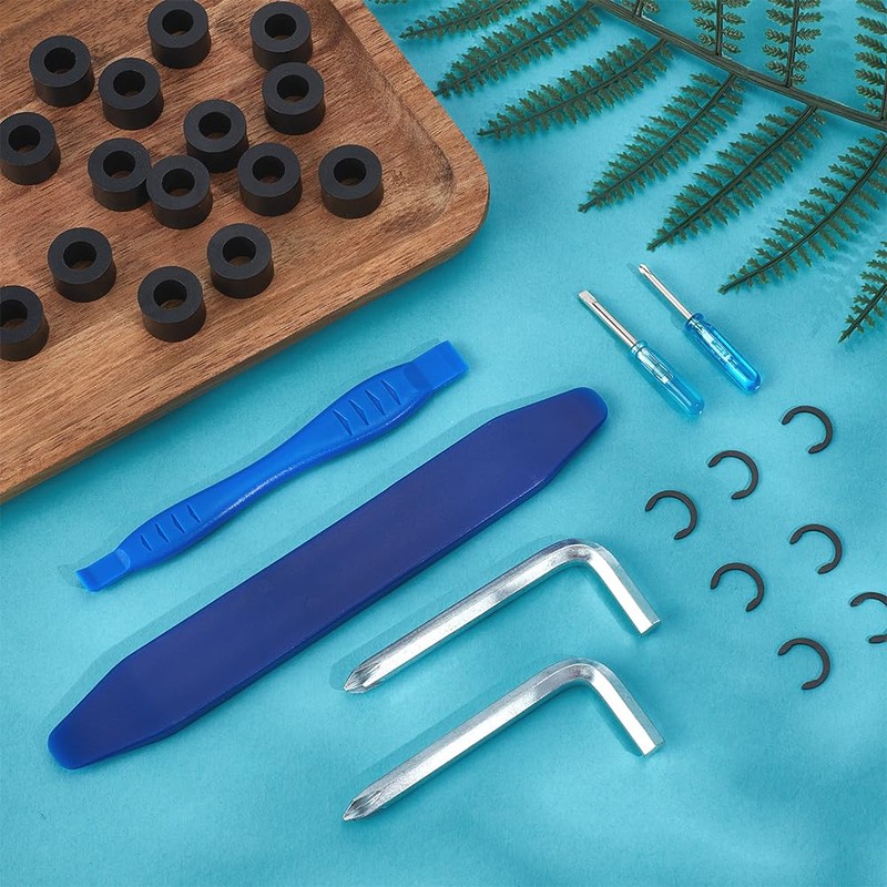 - Rubber Roller Replacement Set--Includes 15pcs rubber rollers, 15pcs retaining rings, 1pcs hascrome screwdriver, 1pcs cross head screwdriver, 2pcs allen wrench, 2pcs pry bar. This set is large enough for you to use and replace