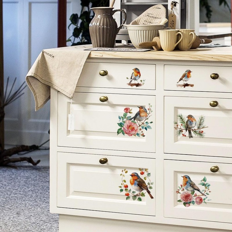 • Bird Pattern--These furniture stickers are designed with robin bird pattern with flower. Fine printing technology makes every pattern delicate and beautiful. Add a touch of elegant and intricate beauty to your furniture.