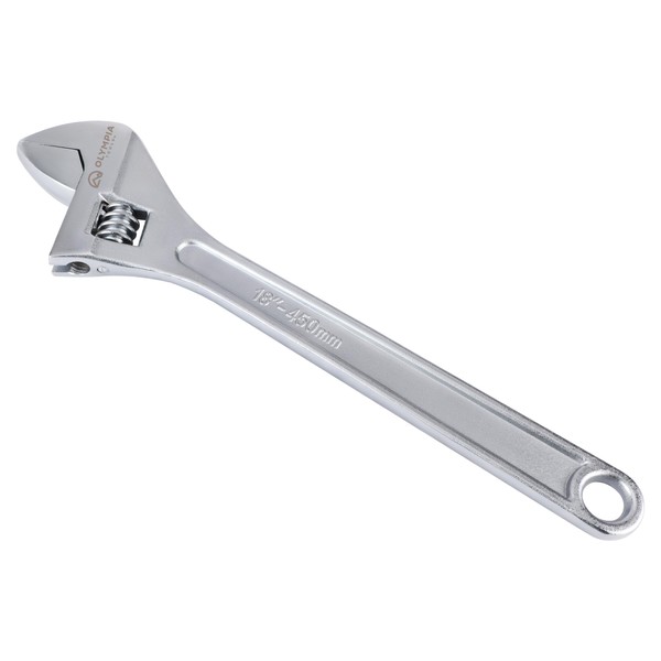 Olympia Tools 18" Adjustable Wrench, Heavy Duty Drop Forged Steel, Chrome Plated, Precision Machined Jaws, Rust Resistant