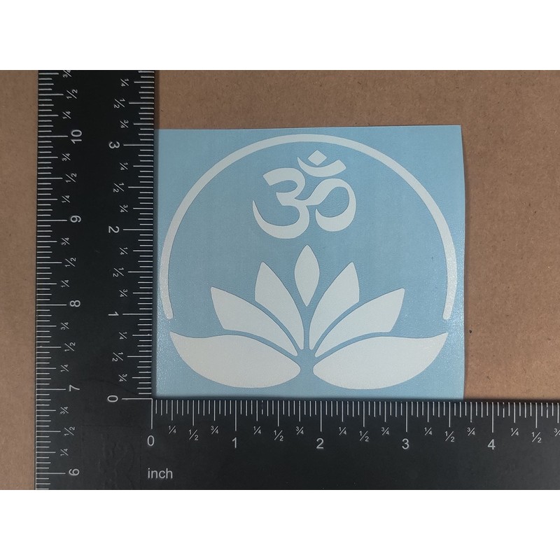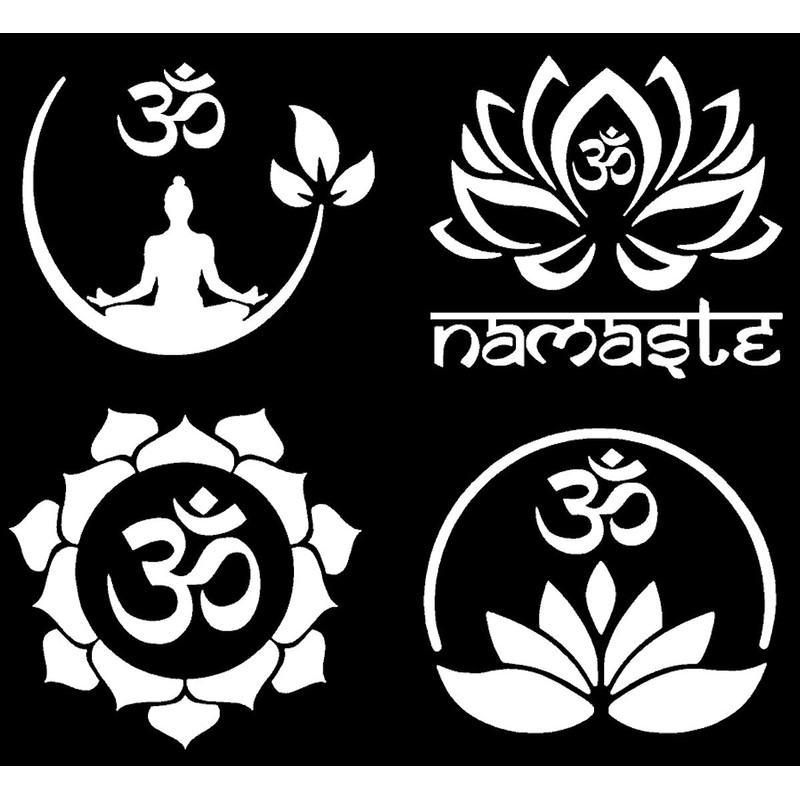 Om (Aum) Decal 4 Pack: Meditation Om, Om Symbol Flower, Lotus Namaste, OM Lotus Circle (White, Small ~3.5")