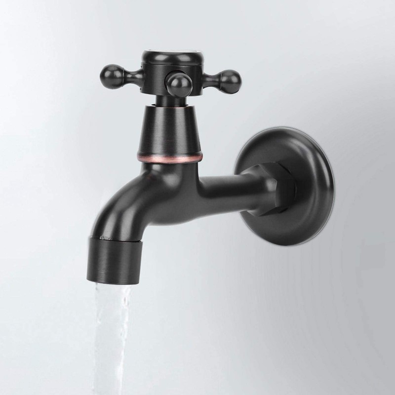 Omabeta Grifo de Montaje en Pared Negro de Cobre Retro Negro Grifo de Agua clásico Grifo de Agua de jardín de Apertura rápida fría única para Uso doméstico en el baño(Long Faucet)