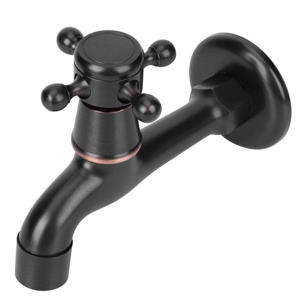 Omabeta Grifo de Montaje en Pared Negro de Cobre Retro Negro Grifo de Agua clásico Grifo de Agua de jardín de Apertura rápida fría única para Uso doméstico en el baño(Long Faucet)