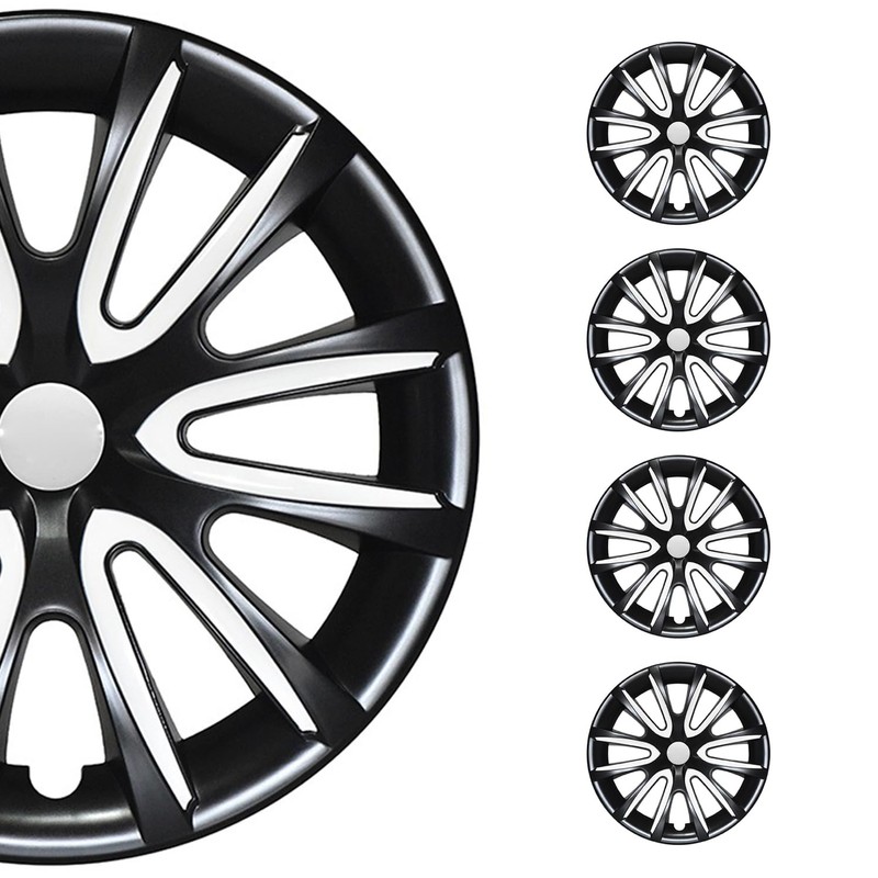 OMAC - Black White Gloss Hub Caps 16 Inch Set of 4 for Nissan Sentra, Tapas para Rines 16, Premium Wheel Covers 16 Inch, R16 Rim Cover Set, Snap On Durable Car Replacement Exterior Accessories