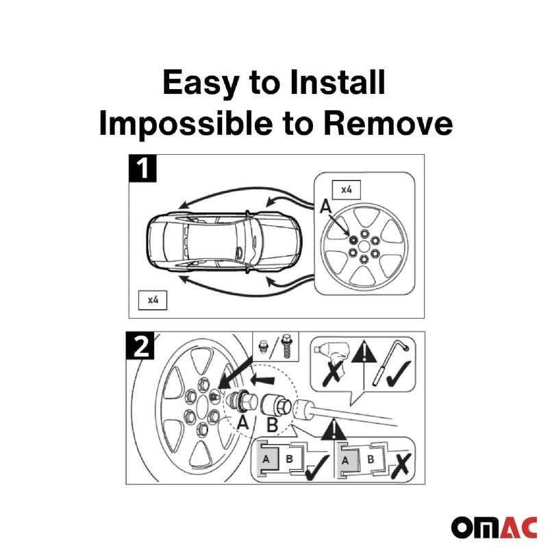 OMAC Wheel Lock Kit for Kia Sorento M12X1,5 Nut Chromed Black 4Locks & 1Key