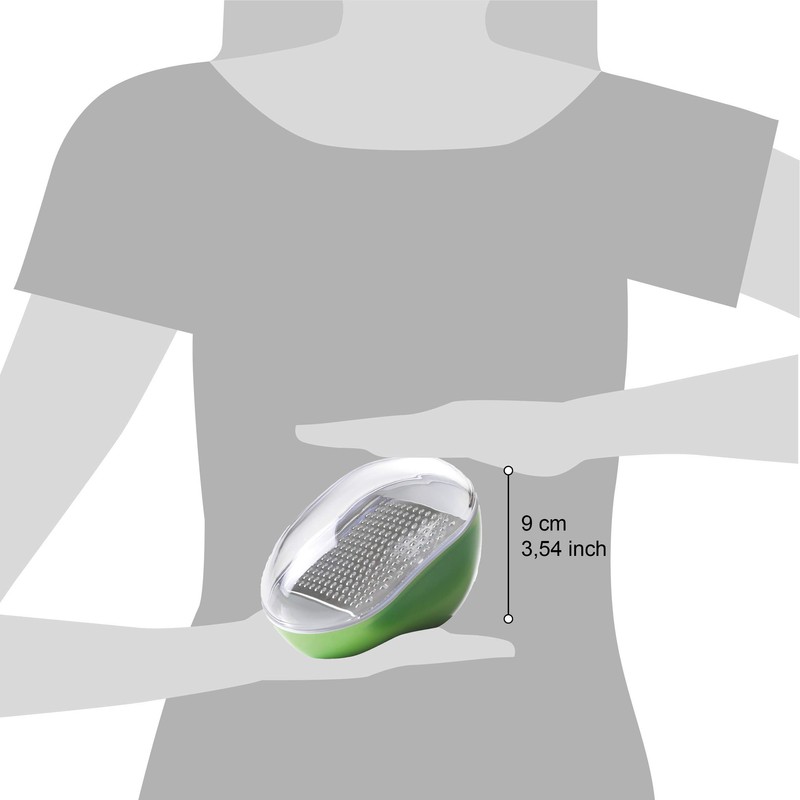 Omada Design Käsereibe aus Kunststoff mit abnehmbarer Edelstahlklinge und Frischhaltedeckel, Made in Italy, 14x9x9,5 cm, geeignet für den Geschirrspüler, Trendy Linie, Grün Farbe