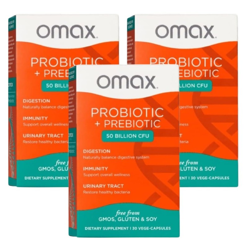 Omax3 Boxes Vegan Probiotic + Prebiotic Supplement Pills, 50 Billion CFU, 10 Clinically Studied Strains, Dairy-Free, Non-GMO, Blister Packed (90 Vege-Capsules)