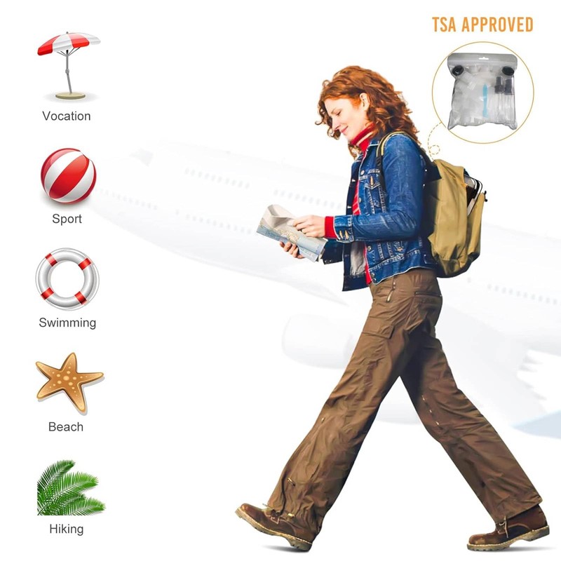 - ✈【Portable & Easy to Carry】 Carry OMBRISA travel containers kit that are TSA-friendly in size, so you don't have to worry about any of your essentials being thrown out at the airport. These will ease you through TSA clearance. Even better, all travel bottles containers easily fit in a clear bag when traveling with a carry on. Suitable for gym showers, travel, vacations, plane trips, camping.