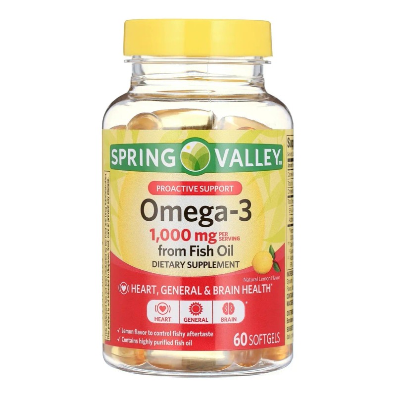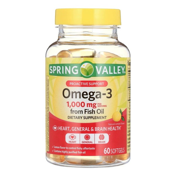 Omega 3 1000 mg Spring Valley 60 cápsulas blandas con sabor a limón de EE. UU.