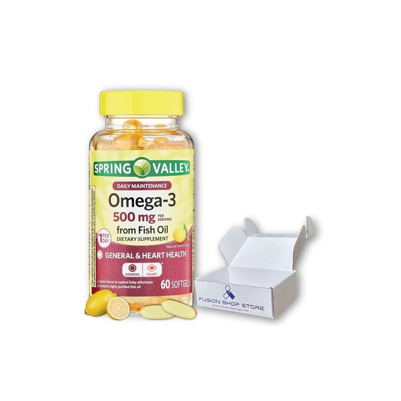 Omega 3 500mg- Fish Oil Softgels, 60 Count (Pack of 1), Boxed by Fusion Shop Store