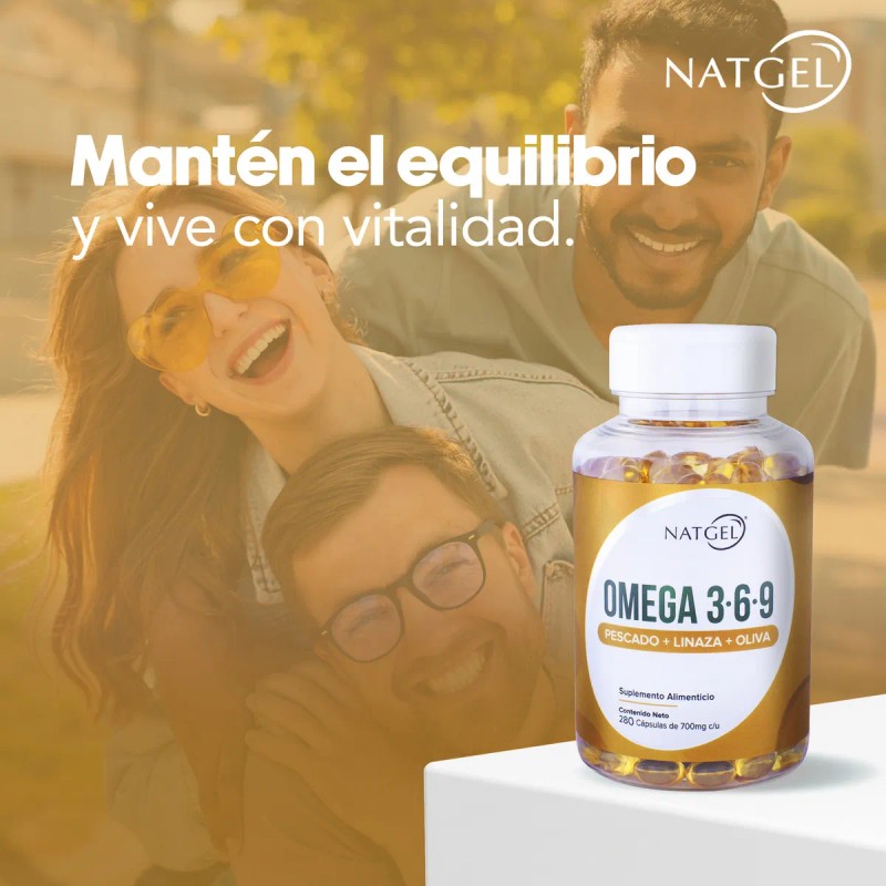 - Descubre los beneficios de un soporte integral para tu salud con Omegas 3, 6 y 9 de Natgel. Esta fórmula combina aceites de pescado, linaza y oliva en 280 softgels de 700 mg, proporcionando un complejo de tres tipos de aceites naturales que contribuyen al bienestar general. Diseñado para promover la salud cardiovascular, función cerebral y movilidad articular, cada cápsula ofrece un apoyo balanceado para mantenerte activo y saludable. Perfecto para quienes buscan un suplemento completo y fácil de integrar en su rutina diaria. Mejora tu bienestar con la calidad y pureza de Natgel.