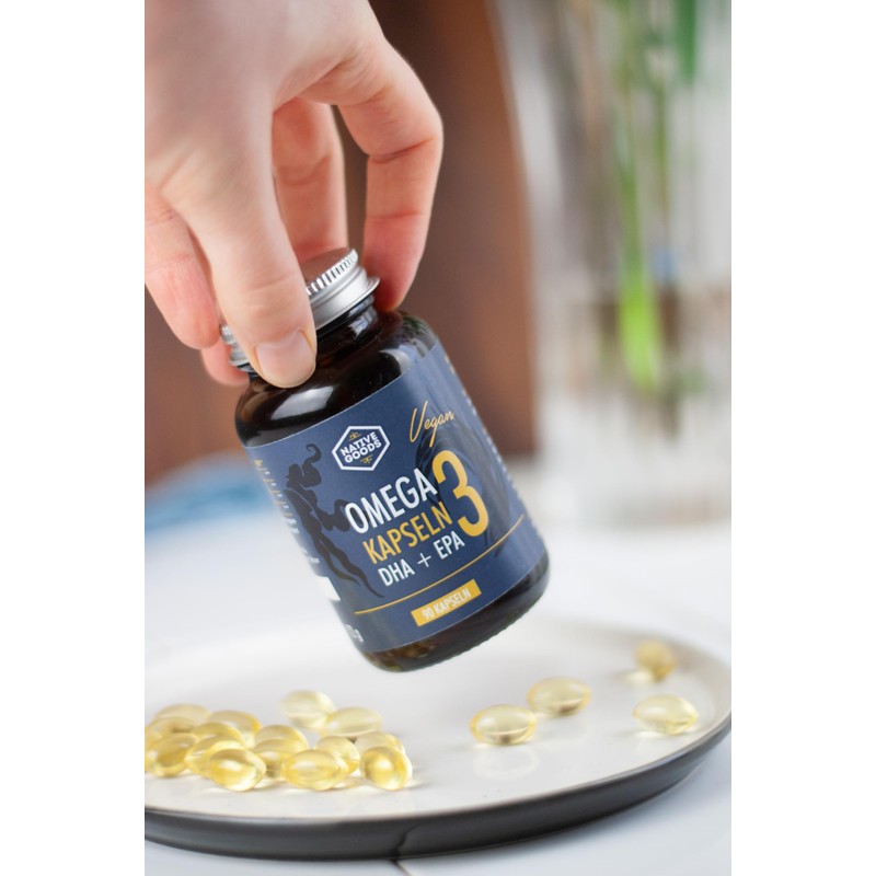 Omega-3 Capsules Algae Oil with DHA & EPA - Pack of 90 Vegan Capsules with 1000 mg Algae Oil from Sustainable Cultures - as Fish Oil Alternative - 300 mg DHA and 150 mg EPA per Daily Dose - Native