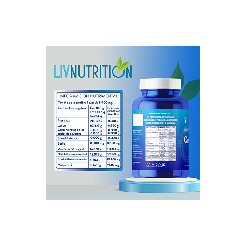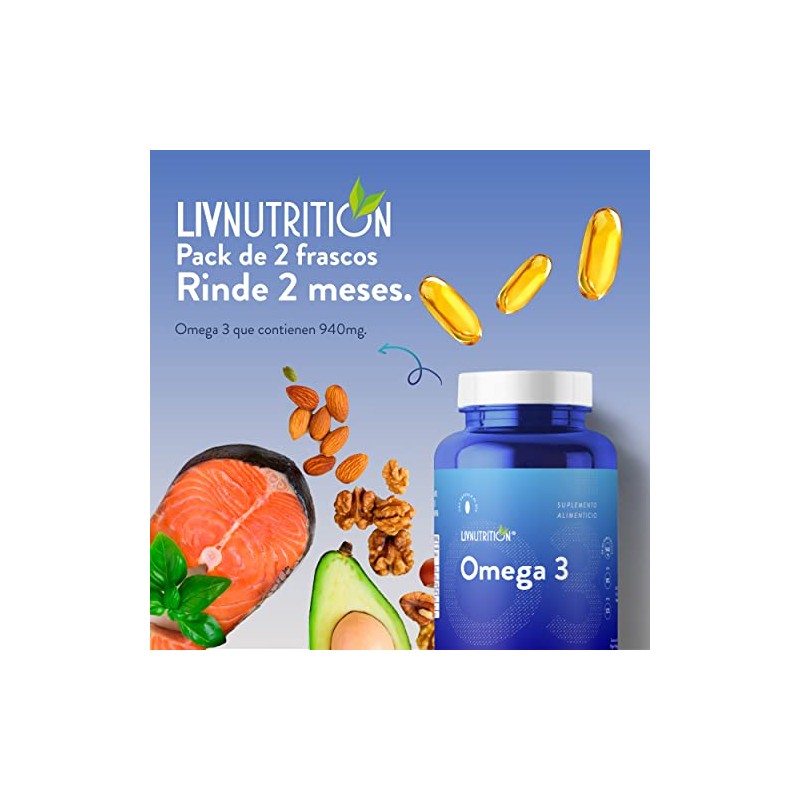 🌟 ⭐ Omega 3 con 60 cápsulas de 1.4 g | 18% EPA | 12% DHA | 2 meses de rendimiento | Pack 2 frascos con 30 capsulas cada uno | Suplemento Alimenticio a base de Aceite de Pescado | 100% Natural | LIV NUTRITION ⭐ 🌟