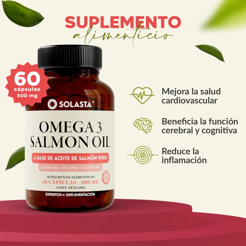 Cuida tu corazón ❤️, mente 🧠 y articulaciones 🦴 con Omega 3 Solasta®. 60 cápsulas blandas de alta calidad. ¡Salud completa en cada dosis! 💊🇲🇽
