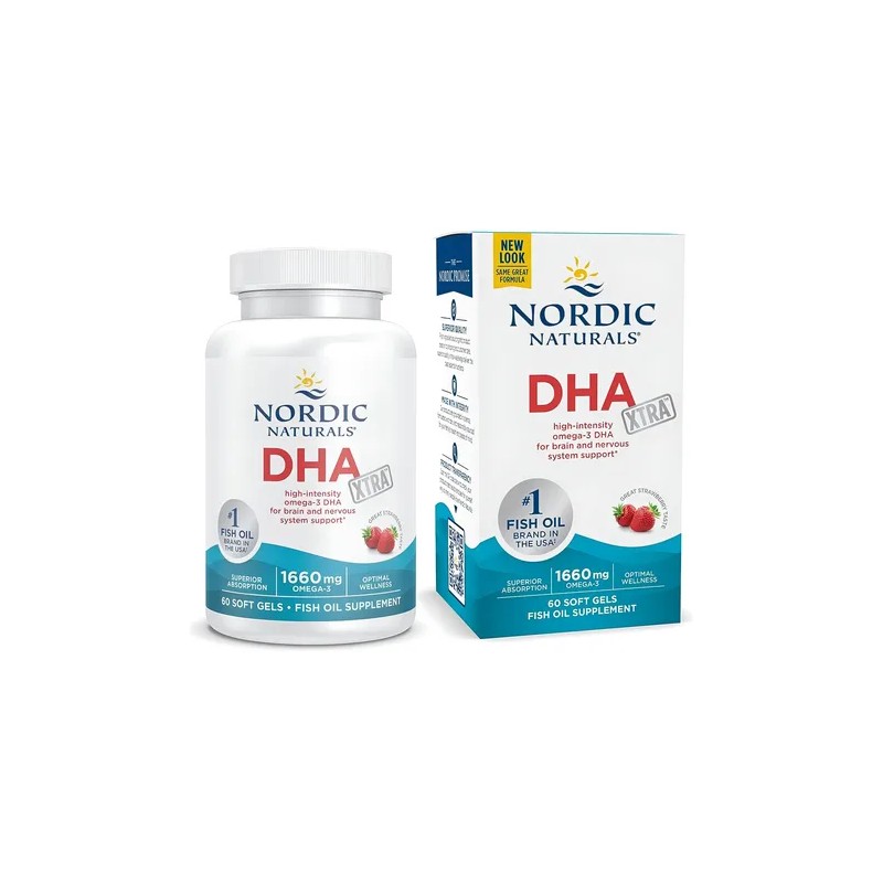 Omega 3 DHA XTRA 1660 mg Nordic Naturals | 60 Cápsulas | Alta Concentración en Triglicérido Natural | Sabor Fresa
