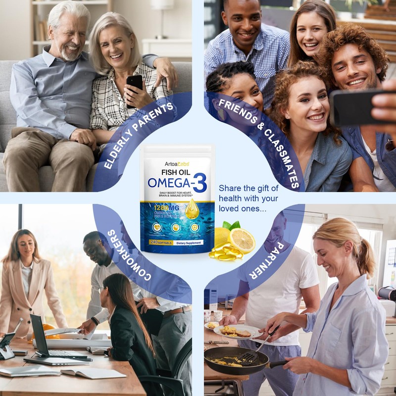 Omega 3 Fish oil-1280 mg Omega-3 Supplement +240 Soft Gels - EPA & DHA - Promotes Brain, Heart, Joint, & Immune Health - 120 Days Servings