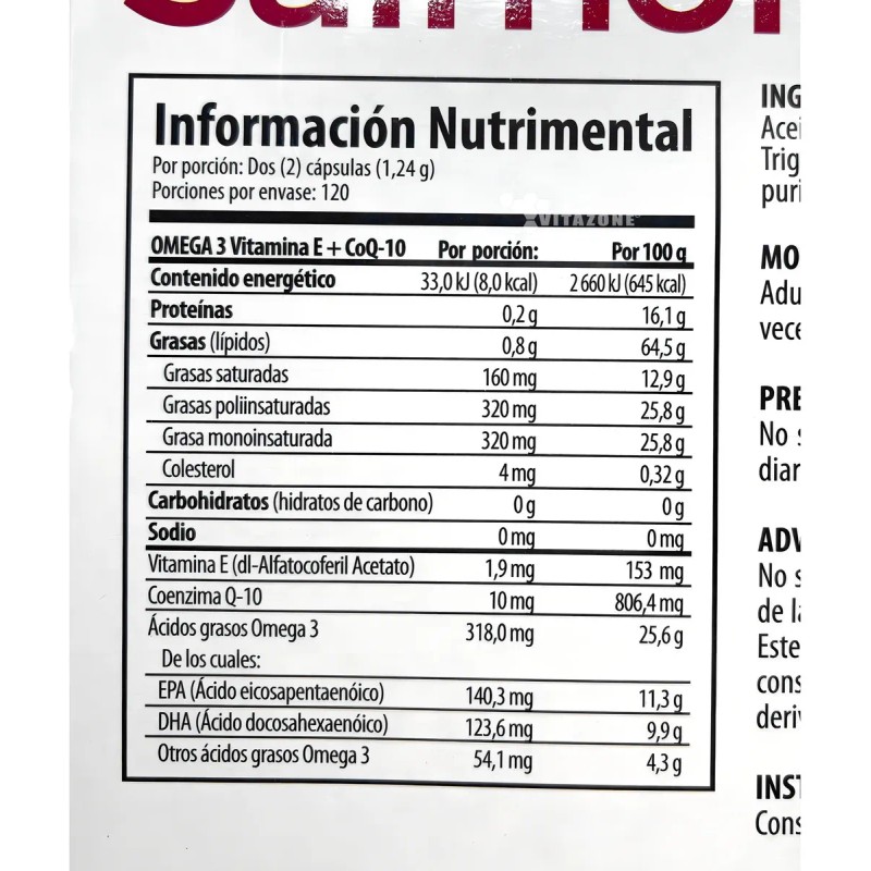 Omega 3 Salmón De Alaska, Vitamina E Y Coq10 240 Cápsulas So Sabor Sin Sabor