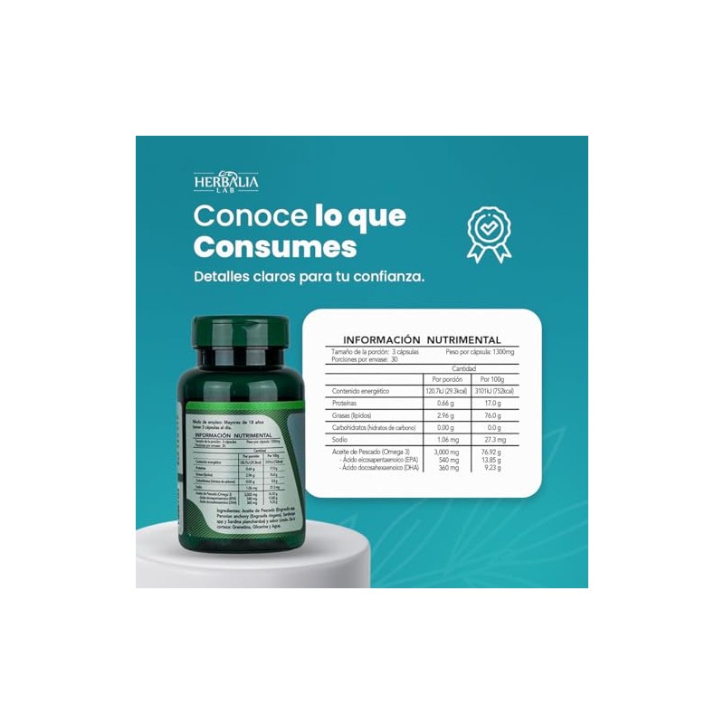 HERBALIA LAB - Omega 3 Silver – EPA 540 / DHA 360 – Fish Oil Puro Certificado IFOS – Alta Potencia – 90 Cápsulas | Herbalia Lab. ⭐ Calidad premium certificada con excelentes reseñas. Tecnología avanzada y rendimiento superior. 💎 Calidad superior certificada. Ideal para quienes buscan lo mejor en calidad y estilo. Producto auténtico con satisfacción total asegurada. ¡No te quedes sin el tuyo y aprovecha esta oportunidad única!
