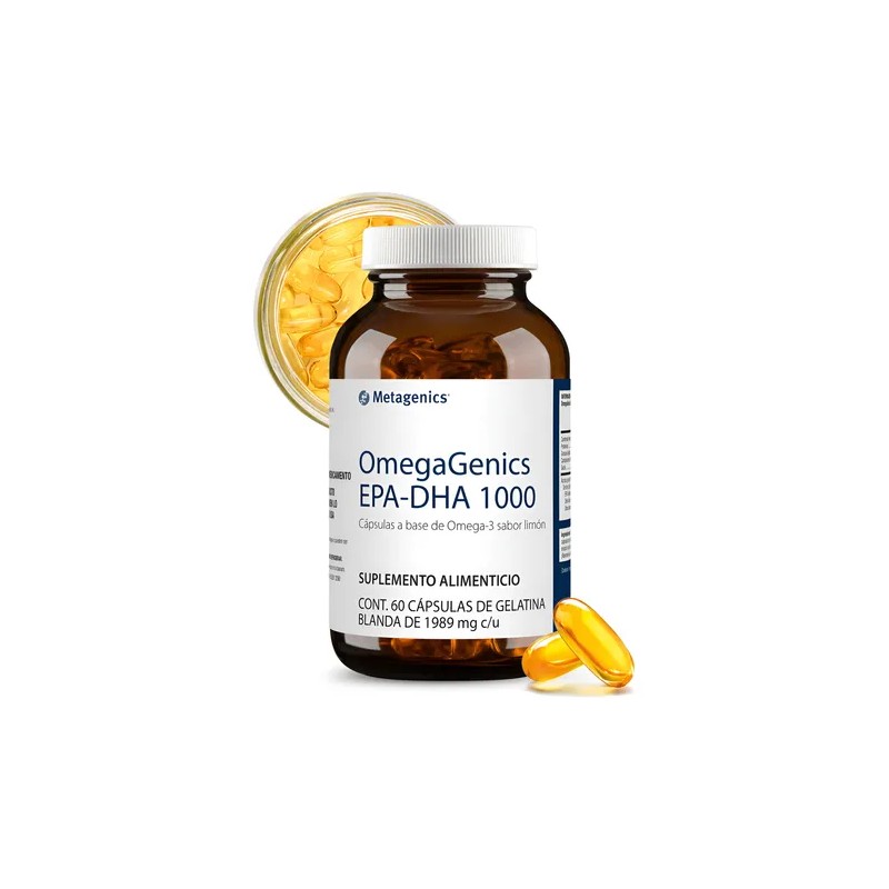 Metagenics OmegaGenics - EPA-DHA 1000 - Fuente Pura De Omega-3 - 60 Cápsulas de 1989 mg c/u - Aceite De Pescado Concentrado - Suplemento Alimenticio con 710mg EPA Y 290 mg DHA Por Cápsula - Sin Gluten ni OGM