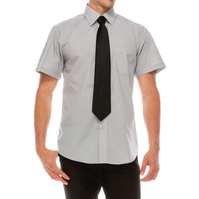 - Solid-tone short sleeve dress shirt with a chest pocket.