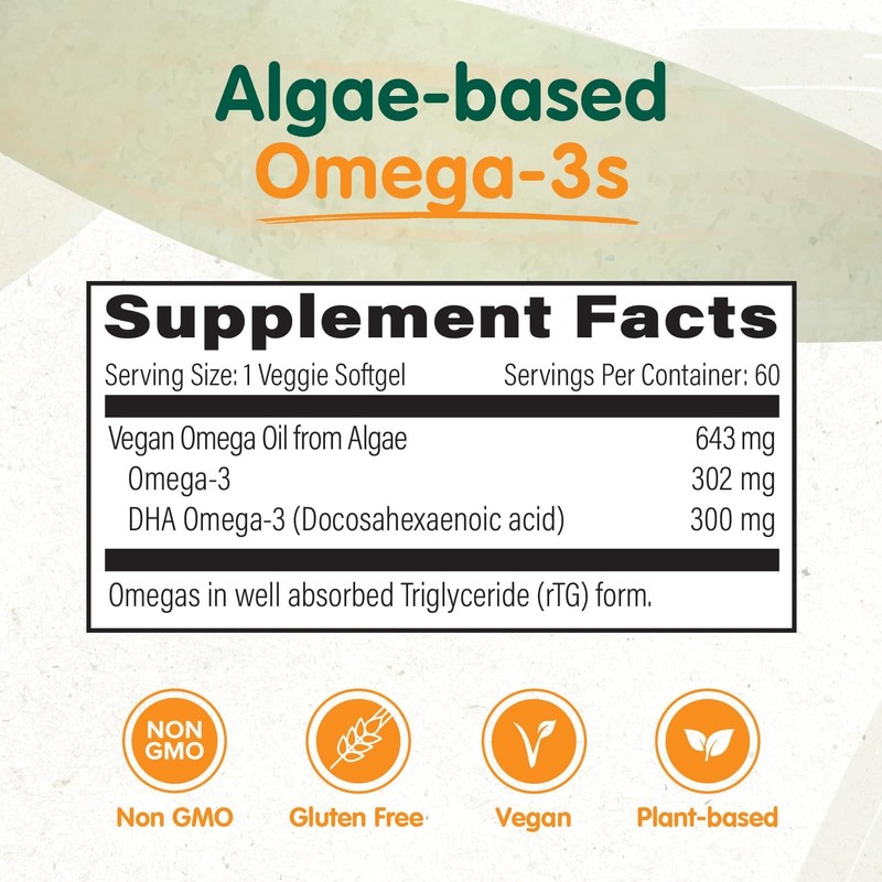 - Allergen Friendly Super clean and free from ocean pollutants, the algae omega 3 supplement for women and men is free from fish, shellfish, dairy, eggs, tree nuts, sugar, wheat, gluten, yeast and artificial colors or flavors