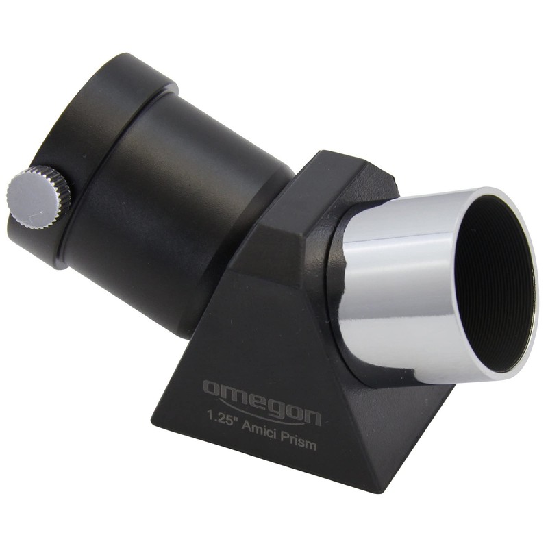 This 1.25" Amici prism, angled at 45°, provides an upright, non-reversed image. It is therefore ideally suitable for terrestrial observing, as it is very comfortable to use when observing near the horizon. The prism is suitable for refractors, Schmidt-Cassegrains, Maksutov-Cassegrains and similar telescopes. Its length makes it unsuitable for use with Newtonian telescopes.