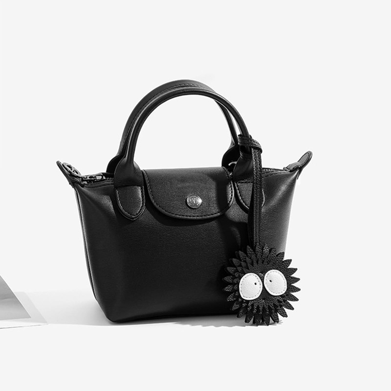 OMELUMO Elegant Black Leather Bag Charm,Soot Sprite Keychain & Charm,Stylish Purse Accessory,Unique Gift for Women