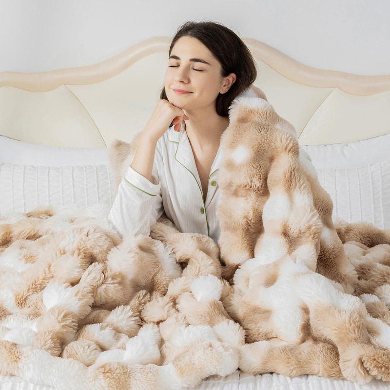 - Luxurious Soft Fuzzy Faux Rabbit Fur Throw Blanket:Made with 600GSM fluffy faux rabbit fur face side and silky micromink fleece inside, our throw blanket is ultra soft and cozy on both sides. The selected fabric weight from the fuzzy blanket provides the perfect balance of warmth without causing overheating, making it ideal for cold moment