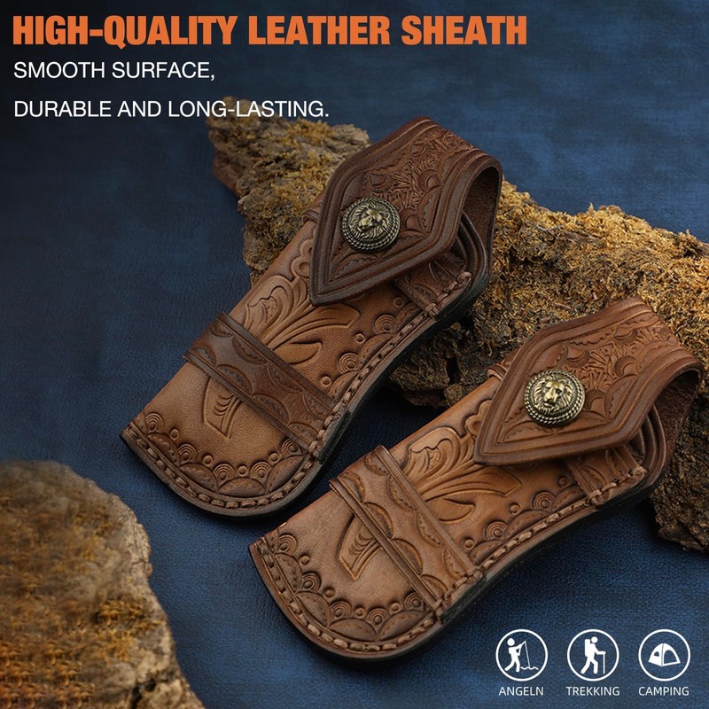 - LEATHER KNIFE SHEATHS: The pocket knife sheath is made of high quality vegetable tanned leather, with high flexibility and durability, it is scratch-resistant and wear-resistant